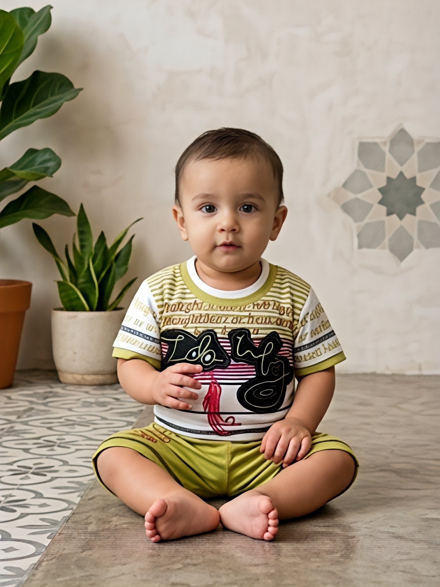 Dress your little one in style with this adorable baby clothing set featuring a trendy printed T-shirt paired with matching shorts. Made from soft and breathable fabric, this outfit ensures maximum comfort for your baby throughout the day.