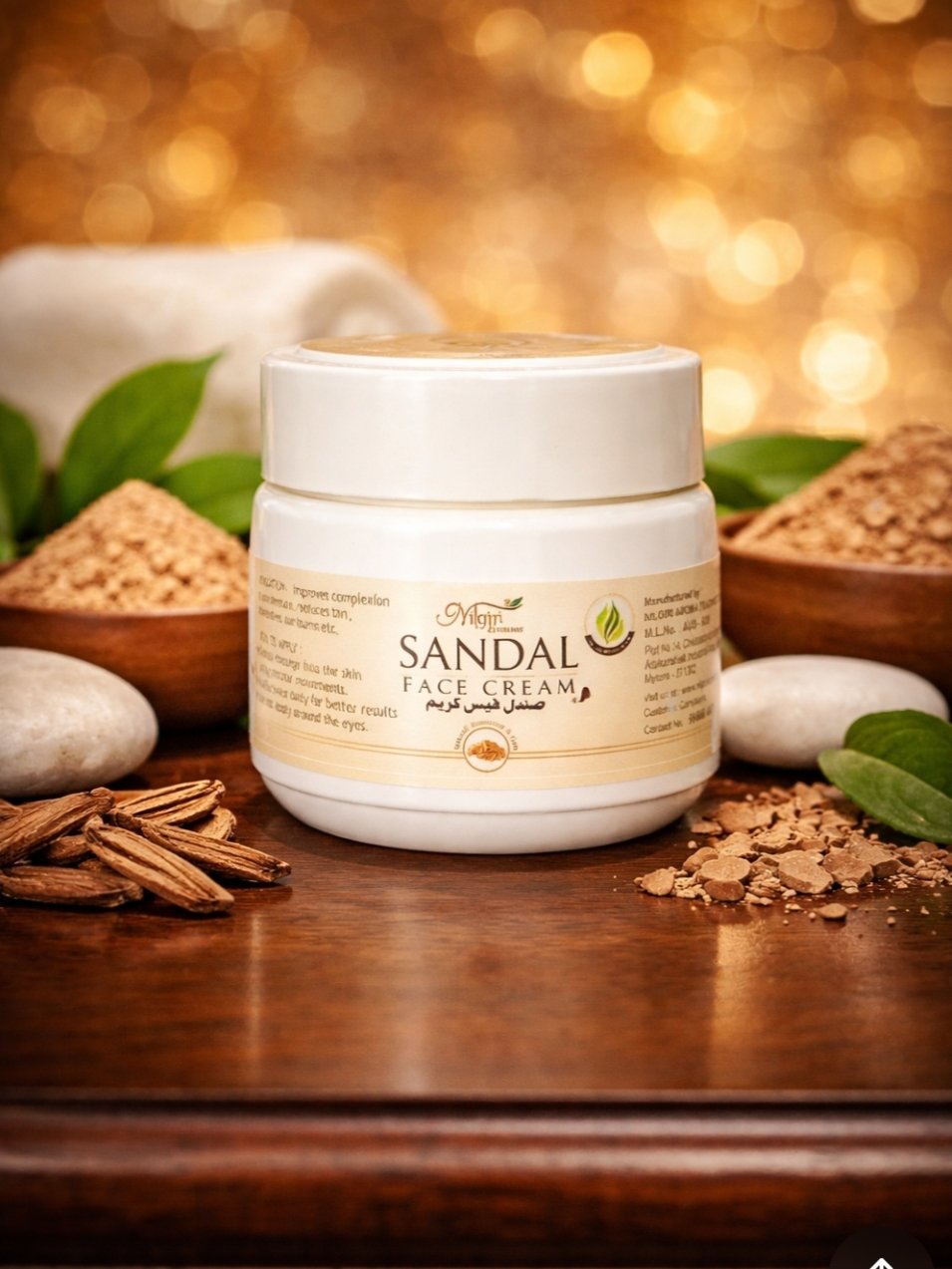 A nourishing sandalwood face cream that hydrates, brightens, and improves skin texture for a soft, glowing complexion.