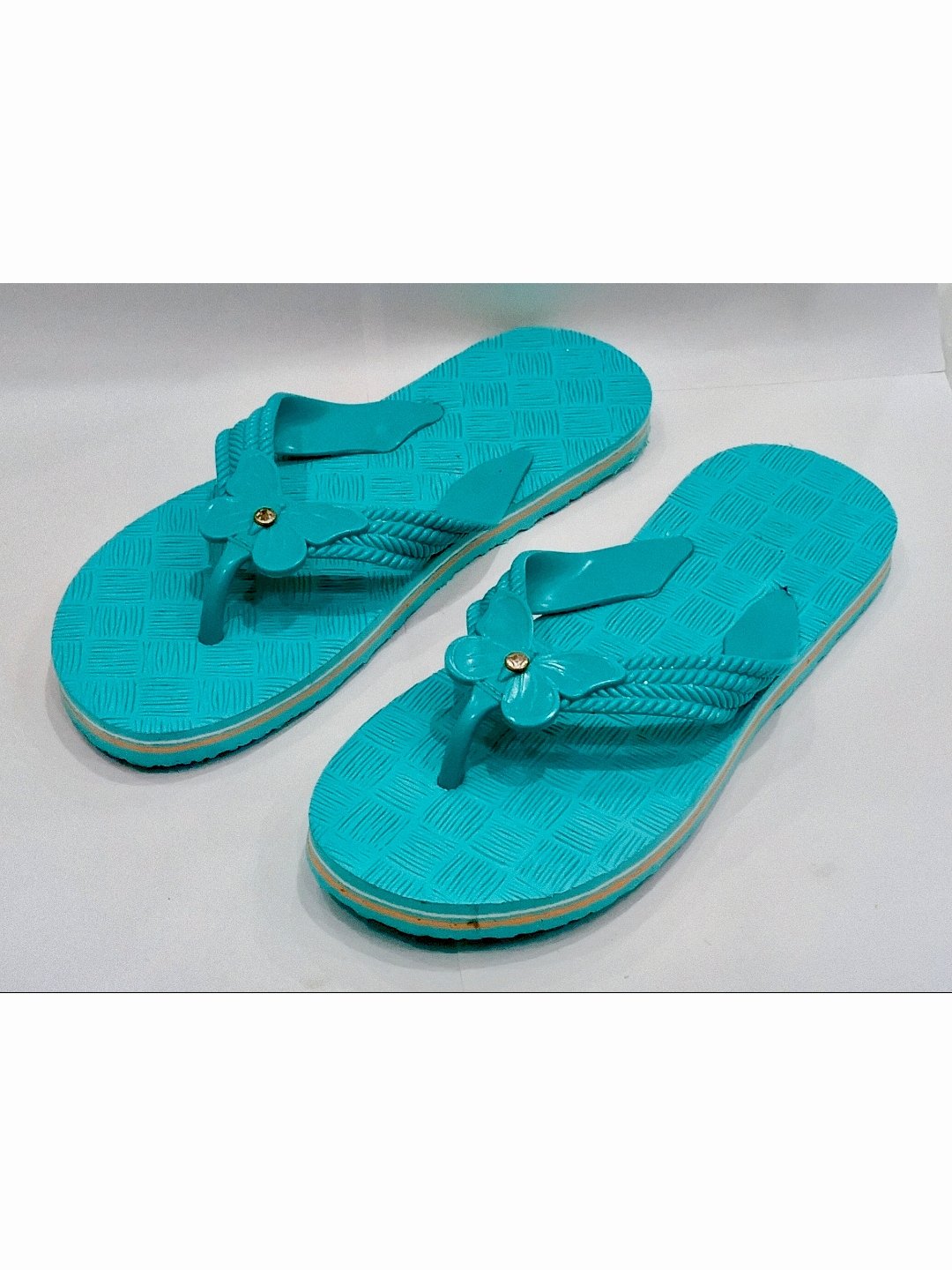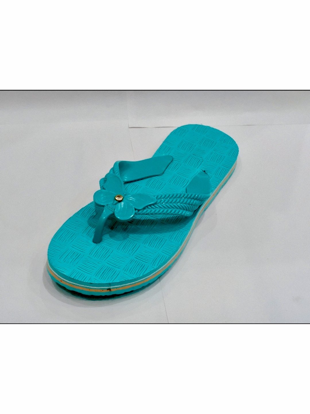These turquoise flip-flop slippers feature a stylish flower detail on the strap and a textured footbed for better grip. Designed for comfort and ease, they are lightweight, durable, and perfect for casual use at home, beach, or outdoors.